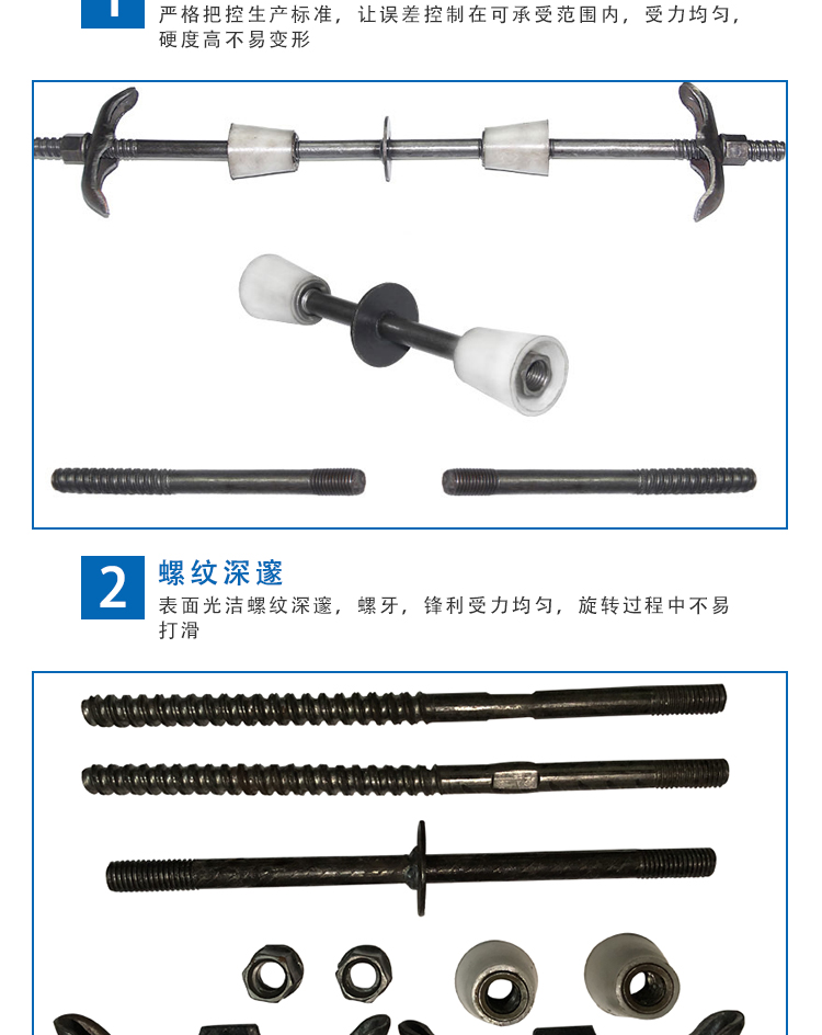 三段式止水螺桿是分為三個部分,其中包含外桿、內(nèi)桿以及連接母(套筒型三段式止水螺桿除外,套筒型是用的膠墊),根據(jù)外觀上來看其是三段,所以也叫三段式止水螺桿。